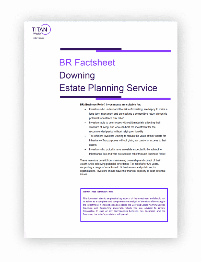 The Downing Estate Planning Service is a discretionary portfolio that has been running since 2013. It offers access to two complementary strategies: asset backed trading businesses such as care homes, education and specialist care, and renewable energy and infrastructure. The service targets steady annual returns of 3% to 4.5% net of fees.